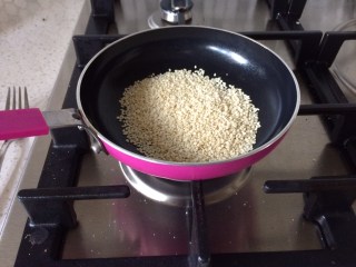 1. In a small non stick pan, toast the sesame seeds until browned lightly.